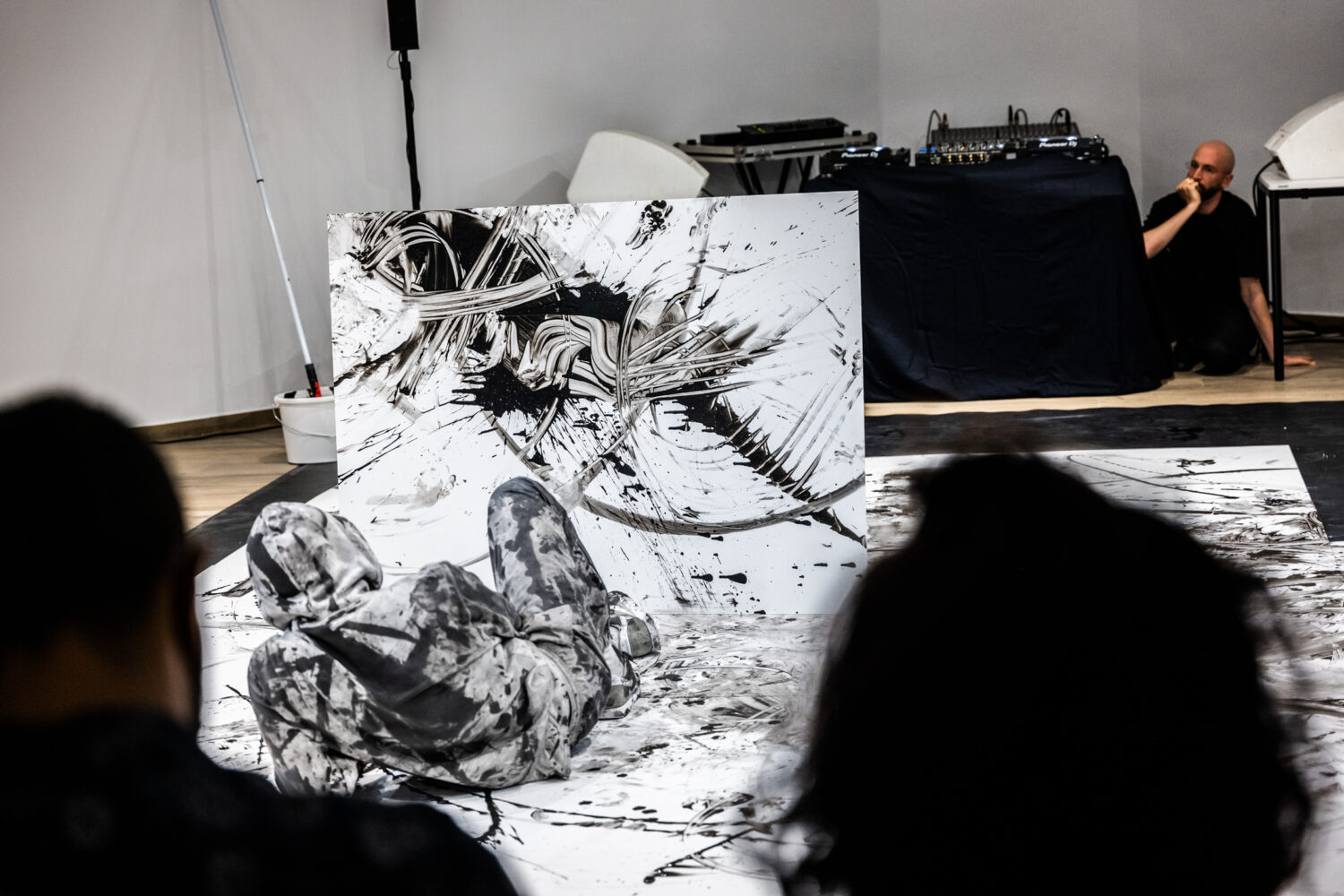 Die Bühne wird zum Atelier und Tanzraum, in dem die Kunstformen ineinander verschmelzen. Während die Bewegungen des Malens als Tanz sichtbar werden wird der Tanz auf den Bildern verewigt und zu Malerei.